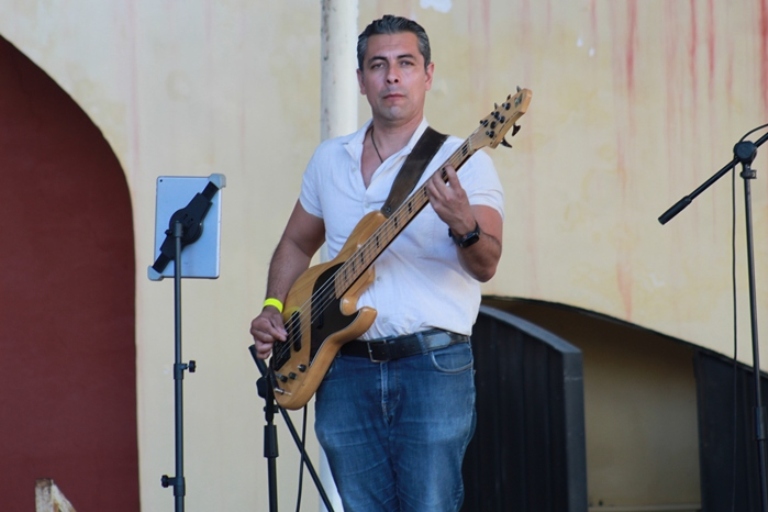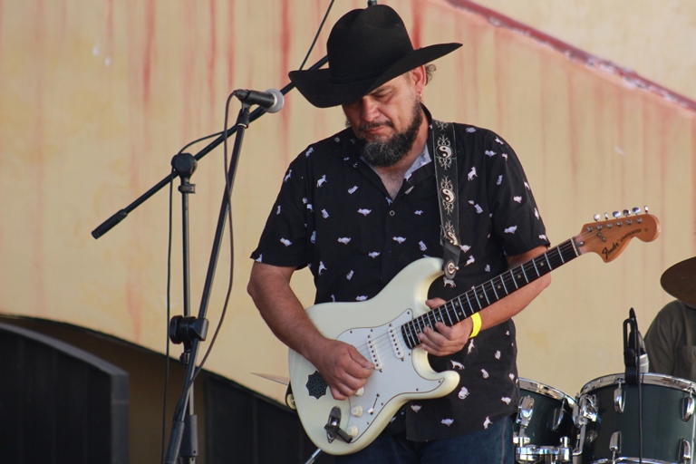 La expectativa por los números musicales que estarían en el cierre del Festival iba creciendo momento a momento en el Jardín del Arte, fue entonces cuando apareció JC Cortés Band en formato de trío. Un gran artista y amigo que, por cierto, siempre ha lucido con sus actuaciones en el marco del Queretablues. Juan Carlos ha participado en las ediciones: 2015, 2019, 2021 (modalidad virtual), 2023, y 2025. También es de señalar, que esta banda ha estado en los últimos meses muy activa, se perfila como una de las bandas destacadas en el año. Y en efecto, la actuación de esta tarde en Querétaro fue extraordinaria, cada uno de sus números con diferentes tipos de guitarra, y su fusión con música mexicana es un plus en sus conciertos.