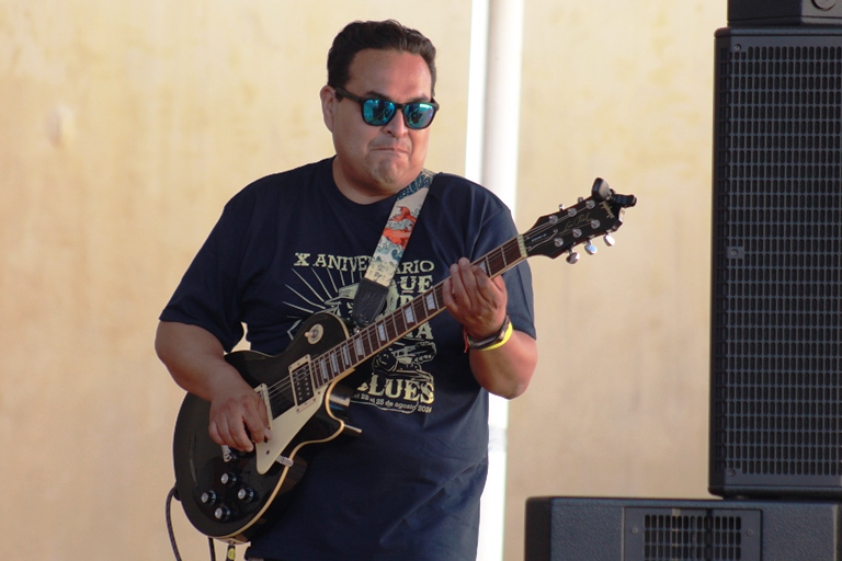 Cruzamos la calle y después de observar la prueba de sonido de Memo Briseño y su juvenil banda, nos preparamos para escuchar con mucha atención la extraordinaria conferencia dictada por Alain Derbez que llevó como título: ‘Un Largo Blues Inútil”, Alain platicó momentos históricos del blues, un poco de su participación en la escena nacional, tocó el saxofón y la armónica e incluso leyó poesía, canciones, un pasaje de algunos de sus interesantes libros y “El Blues de Sam”, un soneto de José de Jesús Sampedro, recientemente fallecido. Un inicio alentador para una tarde con clima agradable para el blues.